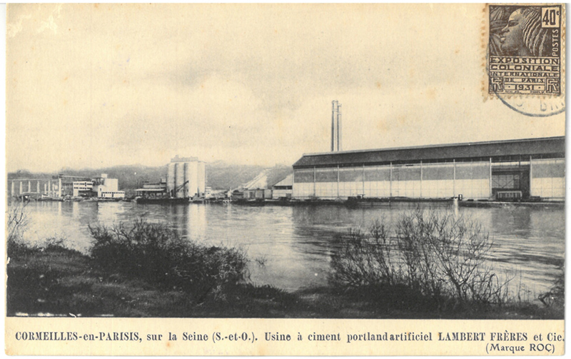 Lambert Frères et Cie aménage une cimenterie et un port commercial près de la Seine, à la limite de La Frette et de Sartrouville. Elle est reliée à la carrière de Cormeilles, située à 3 km, par une petite voie ferrée privée permettant d’acheminer les matières premières (marnes et gypses). Ouverte en 1931, la cimenterie est utilisée pour la fabrication de la ligne Maginot. Lors de la Seconde Guerre mondiale, les Allemands la mettent à contribution pour la construction du mur de l’Atlantique. Au fil des années, elle ne cessera de se moderniser et emploiera jusqu’à 350 personnes dans les années 60.